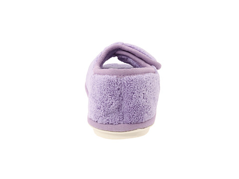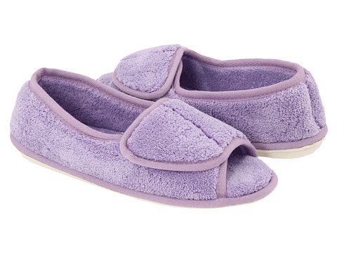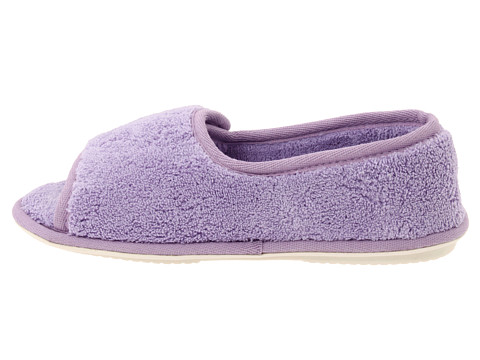 Deslizador Washable de pano de terry com dedo do pé aberto e parte traseira fechado. Fechamento inteiramente ajustável da aleta do prendedor do gancho-e-laço para o ajuste personalizado. Aperfeiçoe pisando fora do chuveiro. Parte inferior de borracha. Insole da espuma da memória.